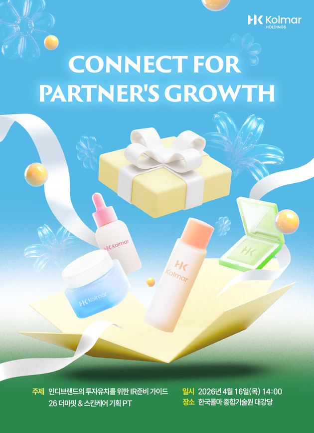 이번 세미나는 초기 브랜드의 투자 유치에 필요한 사항을 점검하고, 노하우를 공유하기 위해 마련됐다. 2024년부터 이어온 인디브랜드 대상 동반성장 프로그램의 일환이다. 콜마홀딩스는 '인디브랜드 IR 준비 가이드'와 '스킨케어·더마 화장품 트렌드 및 신기술'을 주제로 강연을 제공한다.