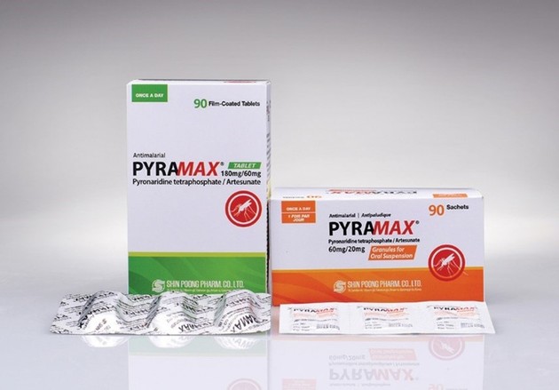 이번에 개정된 말리리아 진료가이드(제3판)에서는 "국내발생 말라리아 치료시 클로로퀸 금기이거나 신속한 열원충 제거가 필요한 경우 혹은 클로로퀸 치료 실패가 확인된 경우에는 아르테수네이트-피로나리딘(피라맥스)을 대체 약제로 사용할 수 있다"고 등재돼, 클로로퀸 금기 및 치료 실패뿐 아니라, 신속한 열원충 제거가 필요할 경우에는 기준 표준치료제인 클로로퀸을 대체하여 사용할 수 있게 됐다.