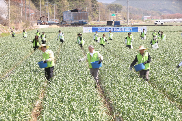 농협중앙회(회장 강호동)는 본격적인 영농철 도래를 알리고 범국민적 농촌일손돕기 참여를 확산하기 위해 13일 경남 새남부농협 농산물산지유통센터에서 2026년 범농협 영농지원 전국 동시 발대식을 개최했다.