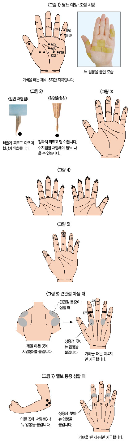 ×표 손끝 부위에서는 채혈을 주의해야 합니다. 당뇨가 악화됩니다.