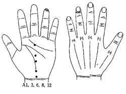 오토바이 교통사고를 당해 좌측 반신불수로, 마비가 된 손이 시리고 저려 서금요법으로 시술하기를 원해 서암뜸을 권했다. 또 손뿐만 아니라 부부관계도 안돼 고민이라고 했다. 서암뜸을 많이 뜨면 정력이 좋아지므로 열심히 서암뜸을 뜨라고 조언했다. 1주일 뒤에 얼굴에 희색이 만연해 찾아오는 모습을 보니 보기가 좋았다. 지금은 상응부위의 손이 저리는 증세도 호전, 기본방과 상응부위에 서암뜸을 계속 뜨고 있다. 처방은 기본적인 처방에 마디 상응부위를 뜨고 손 끝 부분도 뜨고 있다. |