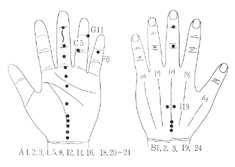 본인의 아내가 기침이 심해 병원에서 진단을 받아 보니 인후염이라 했다. 임신중이라 식염수로 목이나 소독하고 쉬면서 몸조리를 하라고 하기에 서금요법에서 배운대로 시술하기로 했다. 체질은 좌우 신실증으로 보고, 첫날은 신승방에 심정방으로 수지침을 놓고 목 상응부위에 서금요법(서암뜸)을 2회에 걸쳐 떠주고, 둘째날은 목이 너무 아프다고 해 A1·2·3·4·5·8·12·14·16·18·20~24, C5, G11, B1·2·3·19·24, I19에 서암뜸을 떠 주었더니 다음날 아픈 목이 훨씬 수월할뿐더러 뱃속의 아기 때문에 오는 복통이 거의 없어졌다고 했다. 넷째날도 위의 혈에 계속 떠주었더니 더욱 좋아지고 임신 때문에 오는 다른 불편이 없었고 병원에 가보니 의사가 의아해 할 정도로 건강하다고 했다. |