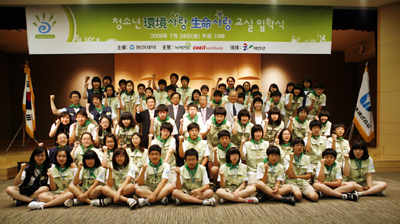 강신호 회장은 “4박 5일 동안 자연 속에서 즐겁게 체험하며 환경의 중요성을 느끼는 의미있는 시간을 갖기 바라고, 이러한 경험을 통해 환경사랑과 생명사랑을 실천하고 알리는 훌륭한 사람으로 성장하기 바란다”며 참가 대원들을 격려했다. 이번 행사에 참여하는 중학생 50명은 7월 24일(금)부터 7월 28일(화)까지 4박 5일 동안 안면도 자연휴양림 및 태안반도 일대에서 숲과 해안 생태 모니터링, 사구(沙丘)탐사, 갯벌 체험 등 환경에 대한 다양한 체험교육을 받게 된다. 또한, ‘저탄소 녹색성장’관련 전문 강사의 강의와 함께 체험교육을 받는다. 올해로 4회째를 맞는 청소년 환경사랑·생명사랑 교실은 청소년들에게 환경의 중요성을 직접 깨닫게 하기 위해 마련된 프로그램이며, 동아제약이 참가비 전액을 지원했다. 동아제약 관계자는 “미래세대인 청소년들이 ‘청소년 환경사랑·생명사랑 교실’을 통해 생명의 근원인 환경의 소중함을 배우고, 환경을 보호하고 아끼는 일에 앞장서길 기대한다”고 밝혔다. 이날 입학식에는 행사위원장인 동아제약 강신호 회장과 김원배 사장, 녹색연합 박영신 대표와 녹색연합 홍보대사인 김미화 씨 외 참가대원 부모 50여 명이 참석했다. |