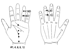 핏덩어리가 떨어질 정도로 심한 방광염 증세를 보이던 여성이다. 핏덩어리가 떨어질 때마다 등줄기로 방사통의 심한 증세가 와서 안절부절 못할 정도였다고 한다. 좌우 신실증이라서 삼초사법, 심포보법으로 기마크 봉을 붙이고 황토서암뜸을 기본방에 하루 5장씩 떴더니 숙면을 취할 수 있게 됐었다고 한다. 그후 계속 같은 방법으로 치방하였는데 통증이 사라지면서 방광염 증세도 해소됐다고 한다. |