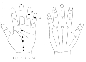 호르몬 분비를 촉진시키기 위해 B26, 불안감 해소 및 영양공급을 위해 K9, F4, 생식기 혈액순환 촉진과 주변 습기, 피부병 제거를 위해 A1ㆍ3에 서금요법(황토서암뜸)을 특히 많이 떠주고 A6ㆍ8ㆍ12ㆍ18ㆍ33에도 5장 이상씩 떠 주었다. 1주일이 지나 고환의 축축함이 없어졌고 습진이 사라지면서 원기가 좋아짐을 느낀다고 했다. 남성의 경우 치질 증상은 정력까지도 떨어지게 한다. 서금요법을 활용하면 피로회복은 물론 치질예방과 시술에도 도움을 준다. 45세 남자회원이 치질로 고생하던 중 B1에 다침하고 황토서암뜸을 매일 3장 이상 뜬 후 서금요법(기마크 봉)을 붙여주면서, A1ㆍ3ㆍ6ㆍ8ㆍ12에도 서암뜸을 열심히 떴는데 1주일 후 치질이 해소됐다고 자랑했다. |