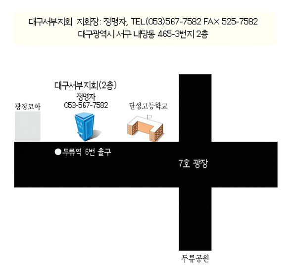 최근 대구서부지회(지회장 정명자 053-567-7582)가 확장, 이전 주소는 대구광역시 서구 내당동 465-3번지 2층. 정명자 지회장은 “새로운 마음과 다짐으로 서금요법 보급에 최선을 다하겠다”고 이전 소감을 밝혔다. |