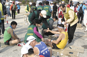 강미순 학술위원 외 30여 명의 수지침사들은 7000여 명이 참가한 이번 대회에서 자원봉사를 실시해 서금요법이 마라토너와 참석자들에게 널리 알려졌다. 이번 행사에서 수지침사들은 마라토너들에게 출발 전 경련, 무릎통증, 허리통증 등의 증상에 해당하는 상응점에 기마크봉으로 자극을 주었다. 강미순 학술위원은 “MBC 마라톤대회를 통해 서금요법(수지침)이 많이 알려졌다”며 “지난 2회 대회 때 3등으로 골인한 여성마라토너가 서금요법(수지침) 덕분에 3등을 했다고 인사를 받았던 일, 서금요법 응급처치로 경련을 해소시킨 일 등 기억이 새롭다”고 말했다. 한편 이날 가족과 함께 행사에 참가한 8세의 남자아이가 손등과 손가락 말초부분에 두드러기 증상이 있었는데 이승윤 수지침사가 대장승방을 아큐빔 조사 후, 기마크봉을 붙여주니 곧바로 두드러기가 완화돼 화제가 됐다. 동반했던 아이의 엄마는 자원봉사자 모두에게 몇 번이고 감사의 표현을 하면서 “앞으로 반드시 서금요법(수지침)을 배우겠다”고 각오를 다지기도 했다. |