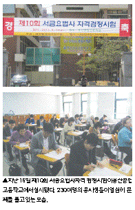 대한평생자격연구원이 주관하고 (사)한국민간자격협회가 시행 감독한 제10회 서금요법사 자격 검정시험’이 지난 16일 서울용산공업고등학교에서 230여 명의 회원들이 응시한 가운데 실시됐다.