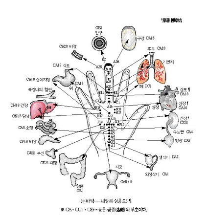 서금요법에서 상응점은 특별한 의미가 있다. 내장에 질병이 있으면 반드시 상응부위에 크고 작은 반사점이 나타난다. 반사의 형태는 다양하다. 어느 경우에는 한열(寒熱)반응으로 나타나고, 어느 때는 긴장대(緊張帶)나 과민통증(過敏痛症)으로, 어느 경우에는 피부반사(皮膚反射)나 색소반사(色素反射)로 나타난다. 이때 상응부위에서 반사점을 찾아 침봉·압진봉·신수지침·기마크봉·서암뜸 등으로 자극을 주면 인체의 해당 병소에 자극이 전달된다. 상응이론은 실제 임상에서 고통·통증 해소에 탁월한 효과가 나타났다. 이처럼 상응요법만으로도 인체의 각종 증상과 고통을 제거할 수 있다. 그러기 위해서는 상응부위와 좌우(左右) 관계를 잘 알고, 반사점인 상응점을 정확히 찾아 자극해야 한다. 정확한 위치가 아니면 한열을 병처에 전달할 수 없으므로 효과가 나타나지 않는다. 상응요법을 이용하기 위해서는 상응부위를 전체적으로 이해한 후, 좌우 관계와 좌우 해당 부위에서 압통점 찾는 방법을 연구한 다음 상응점을 찾아 자극하도록 한다. 1. 상응부위 서금요법의 상응부위는 이전에는 고려수지침 상응부위라고 했다. 필자가 고려수지침, 서금요법을 개발·창시한 것으로 상응점(相應點)과 14개의 기능조절선(機能調節線)을 발견하고 체계화시킨 것이다. 상응부위는 동서고금을 막론하고 언급한 사례가 전혀 없다. 상응부위에 대한 기본 원칙을 다음과 같이 정한다. <다음호에 계속> |