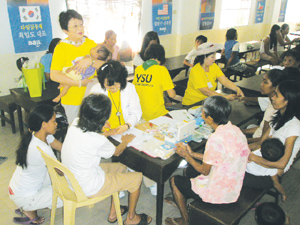 이번 봉사활동 장소는 필리핀의 수도인 마닐라에서 버스를 타고 약 2시간 30분 정도의 거리에 있는 필리핀 원주민들이 모여 사는 곳이었다. 서울에서 ‘밥 퍼’ 목사로 유명한 최일도 목사가 운영하는 ‘다일복지재단’의 필리핀 다일공동체(다양성 안에서 일치를 추구하는 공동체)건물로 그렇게 크진 않지만 따뜻한 사랑이 전해지는 아담하고 소박한 이층집에서 봉사를 하게 됐다. 온 몸에서 땀이 줄줄 흘러내리는 많이 덥고 습한 날씨에도 소문을 듣고 물밀듯이 찾아 드는 까만 피부색의 필리핀 원주민들은 대부분 목구멍이 많이 아프다고 했다. 나는 너무나 궁금해서 왜 목구멍과 가슴이 아프다고 하는지 필리핀다일공동체 원장인 김혜경 목사께 여쭤보니까 매연에 의한 것이라고 했다. 우리가 가끔 TV를 통해서 필리핀의 거리를 보게 되면 자동차와 비슷하게 생겼지만 온전한 자동차가 아닌 ‘지프니’란 차들이 무질서하게 온 도로에 줄지어 다니는 풍경을 접하게 된다. 이 지프니가 24시간 운행하면서 내뿜는 매연 때문이라고 했다. 그리고 만성두통과 편두통 환자가 가장 많았고 위장통증과 경항통, 종아리 통증, 요통 등을 호소하기도 했다. 우선 손을 알코올 솜으로 깨끗하게 소독한 후에 진료카드에 혈압과 맥박을 체크했는데 대부분의 사람들이 맥박수가 빠른 편이었다. 무더운 날씨와 오염된 공기로 인해 숨쉬는 것이 힘들어 보였다. 음양맥진 상으로는 위승과 방광승, 담승이 많았다. 자극기구로는 서금요법(금추봉·PEM·기마크봉)을 사용했는데 손에서 땀이 너무 많이 흘러서 치방 후에 테이프로 잘 감아주고 난 후에 구암봉구에 불을 붙여 하나씩 자극을 하게 했다. 처음으로 뜸을 떠본다며 기뻐하고 행복해 하는 모습들이 눈에 선하다. 지난해에 이어 두 번째로 필리핀 해외봉사에 참여하면서 내 몸도 작년보다는 좀 더 쉽게 현지여건에 적응됨을 느꼈다. 그런데 작년에 갔던 수빅만에 위치한 아이따 부족 원주민들이 사는 곳은 도시와 많이 떨어져 공해는 전혀 없었는데 이번에 방문한 이곳은 도시와 근접지역이라 공해(매연)에 시달리고 있었다. 이번 봉사활동을 통해서 우리가 살아가는 이 지구촌의 환경이 우리 인체에 미치는 영향이 얼마나 중요한 지를 새삼 느꼈다. 비록 그 곳에 머무는 시간이 짧아 아쉽긴 했지만 서금요법자극을 받고 고마워하며 환한 미소로 답하던 그 맑은 모습들을 오랫동안 잊지 못할 것 같다. |