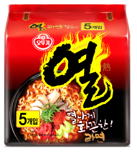 리뉴얼된 열라면은 강한 매운맛을 내는 하늘초 고춧가루가 기존 대비 2배 이상 많아졌다. 매운맛의 강도를 측정하는 스코빌지수(자사측정치기준)를 기존 2110SHU에서 5000SHU 수준으로 대폭 올려 매운맛을 강화시킨 것이 특징이다. 매운 맛 강화 외에도 기존 제품보다 면발의 쫄깃함과 퍼짐성을 보강해 식감이 오래 유지될 수 있도록 했다. 또 나트륨 함량을 1970mg에서 1830mg으로 낮추어 나트륨 저감화 정책에 적극적으로 대처하고 있다. 포장 디자인에 국물의 섭취량에 따라 달라지는 나트륨 섭취량을 표시해 소비자들이 직접 섭취하는 성분에 대해 쉽게 이해할 수 있도록 한 것이다. 제품이 리뉴얼됨에 따라 포장 디자인도 변신을 꾀했다. ‘열나게 화끈한 라면’이라는 메시지로 제품의 특성을 부각시키며 검은색과 노란색을 바탕색으로 해 매운맛의 강렬함이 연상되도록 했다. 오뚜기는 최근 지속되는 불황과 물가 인상 등으로 인한 가계 부담을 덜고자 이번 열라면의 소비자 가격을 기존과 동일하게 출시했다. 오뚜기 관계자는 “빨간 국물 라면의 시대가 다시 열리면서 매운 맛을 선호하는소비자의 니즈에 맞춰 열라면을 새롭게 리뉴얼하게 됐다. 경제 불황과 현대인들이 겪는 갖은 스트레스를 화끈하게 풀어줄 라면으로 인기를 얻을 것”이라고 기대했다. 열라면은 1996년 8월에 출시된 제품으로 오뚜기의 대표 라면 중 하나이다. |