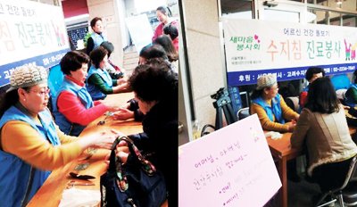 최근 수서 태화복지관에서 주민들을 대상으로 자원봉사를 전개해 주민들의 칭찬을 받았다. 고령화사회 최고의 건강관리법인 서금요법은 누구나 쉽게 배워서 봉사활동에 참여할 수 있고 자신과 이웃들의 건강을 돌 볼 수 있는 매우 보람찬 사회 참여 활동 방법이다. 특히 세계적으로 주목받고 있는 건강관리법인 서금요법을 활용해 자원봉사활동에 참여하는 것은 모든 사람들의 존경을 받고 부러움의 대상이 된다. 김종린 사무국장은 “노후에 자신의 건강을 돌보면서 이웃 사랑을 실천할 수 있는 건강 봉사 활동은 오직 수지침·서금요법뿐이다”라고 말했다. 한편 안은지 총무는 “수지침·서금요법은 어디서든지 누구에게서든지 환영받는 건강관리법이다. 봉사활동에 참여하고 싶은 회원들은 언제든지 연락달라”고 주문했다. |