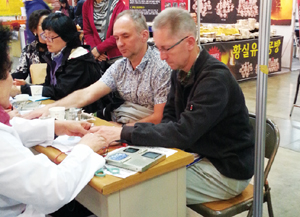수지침 부스를 찾아온 방문객 중에는 정치인·의료인·교수·종교인·외국인 등 다양한 계층의 사람들이 서금요법을 체험했다. 특히 이번 행사기간에는 2~30대의 젊은 방문객도 많이 부스를 많이 찾아왔다. 이들은 장부관련 증상보다 주로 어깨, 뒷목, 허리 통증 등 각종 통증을 호소했고 이들에게 상응요법 자극으로 좋은 효과가 바로 나오자 봉사단원들은 신이 나서 힘든 줄도 모르고 최고의 봉사활동을 전개했다. 장모(30대)씨는 “어깨와 목 통증이 없어지지 않았는데 서금요법 자극을 받다 통증이 시원하게 없어졌다. 참으로 효과가 좋다”면서 “서금요법을 배울 수 있는 방법을 가르쳐 달라”고 적극적으로 관심을 나타냈다. 이번 행사기간에 최고의 봉사활동을 실시한 김 지회장과 봉사단원들은 “이전의 수지침요법 대신 서금요법만으로 자극하니 남녀노소 누구든지 거부감 없이 자극받을 수 있었다”면서 “봉사자의 경우 경험이 그다지 많지 않은 회원들도 자신감을 가지고 참여할 수 있어 어느 때보다 서금요법의 높은 효과성과 국민보건 향상을 위한 가치를 실감할 수 있는 좋은 기회였다”고 소감을 밝혔다. |