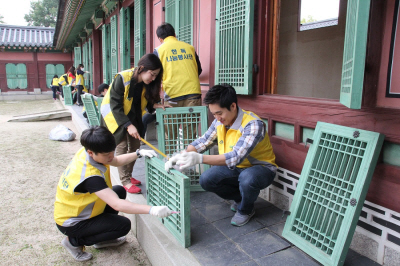 한독나눔봉사단 50여명은 지난 2일 오후 1시부터 4시까지 3시간여 동안 세자가 업무를 보고 공부를 하던 동궁 비현각의 창틀 먼지를 제거하는 등 경복궁 관람로 주변을 깨끗이 청소하며 구슬땀을 흘렸다. 환경정화 봉사활동 이후에는 문화재 해설사의 설명을 들으며 조선왕실의 역사와 경복궁 재건의 의미를 배우고, 경복궁을 관람하는 역사 교육의 시간도 가졌다. 이번 봉사활동에 참여한 신약연구소 최향 연구원은 “경복궁은 국내외 관광객이 가장 많이 찾는 유명관광지 정도로만 여기고 있었는데, 임금님이 실제로 거처했던 대표 궁궐이기에 임진왜란과 일제시대를 거쳐 훼손이 많이 된 아픈 역사를 지닌 곳임을 알았다. 경복궁의 경내 건물들을 청소하며 우리 문화 유산의 소중한 가치를 느낄 수 있어 문화재 지킴이 봉사활동의 값진 의미를 알게 됐다”고 소감을 밝혔다. 이번 한독나눔봉사단의 봉사활동은 문화재청과 한독이 지난 2009년 협약한 ‘한 문화재 한 지킴이 활동’의 일환으로 진행됐다. 한독은 2009년부터 문화재청과 ‘인간문화재 지킴이’ 협약식을 갖고 한국 전통문화가 지속적으로 계승, 발전될 수 있도록 다양한 사회공헌 활동을 펴 왔다. 특히 만성질환과 질병의 위험에 노출돼 있는 고령의 인간문화재에게 종합건강검진을 제공해 건강을 살피는 활동을 꾸준히 진행하고 있다. 한독 김영진 회장은 “지난 50년 간 한독의약박물관을 운영하며 의약학 유물을 보존하려고 노력해 온 한독은 우리나라 문화 유산을 보존하는 일에도 관심이 각별하다”며 “한독 임직원들의 작은 봉사활동이지만 앞으로도 우리 선조의 숨결이 묻은 문화재를 잘 지켜나가는 일에 기여하고 싶다”고 말했다. |