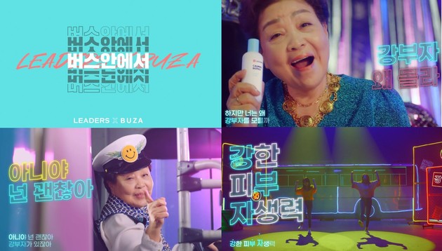15일 공식 유튜브 채널에서 공개된 바이럴 영상은 뮤직비디오로 제작된 ‘BUZA-버스안에서’로, 강부자는 버스기사로 등장해 예민해진 피부로 고민하는 승객들에게 ‘강부자 에센스워터’를 권한다.