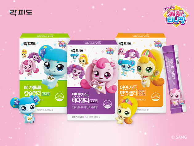 에프앤디넷의 온라인 전용 건강기능식품 브랜드 락피도에서 넷플릭스 키즈 부문 한국 1위를 차지하고 있는 애니메이션 '캐치! 티니핑'의 캐릭터를 담은 비타민 젤리 3종을 출시했다.